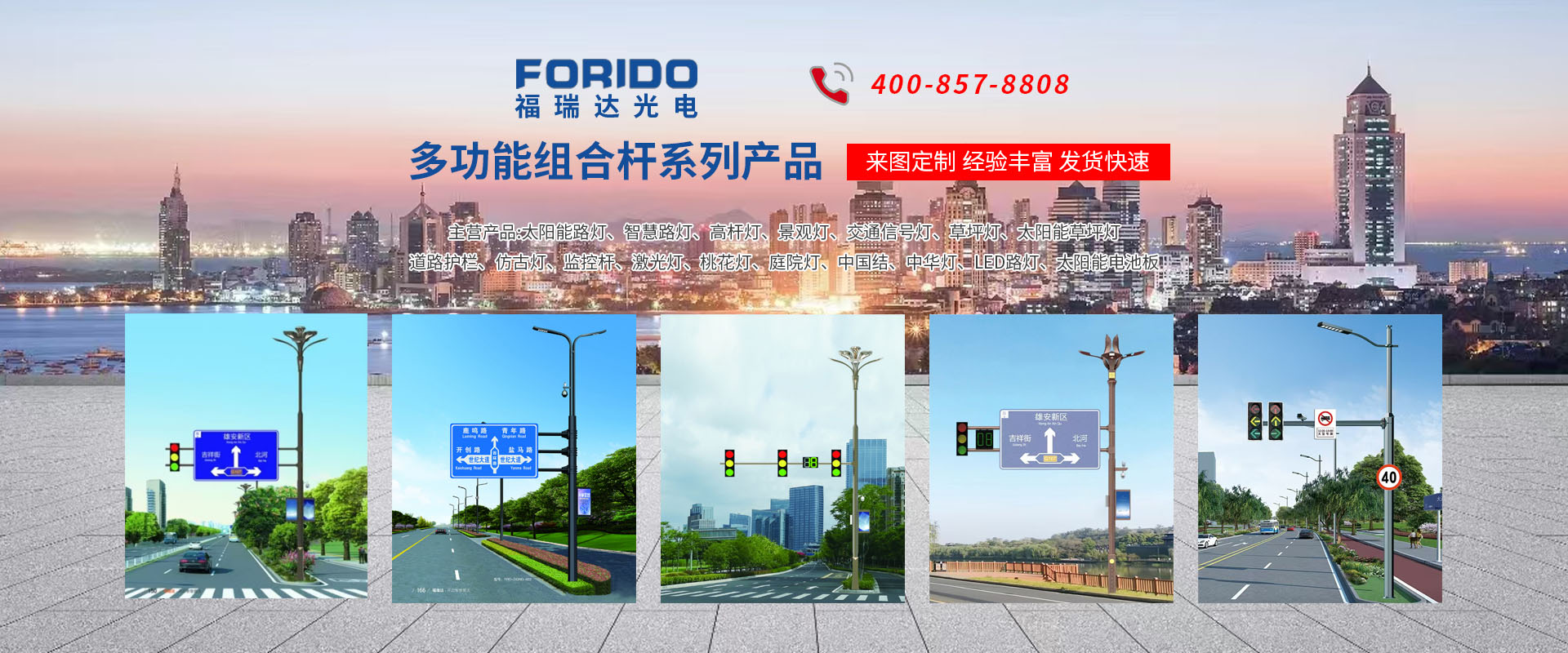 揚州福瑞達光電科技有限公司位于淮左名都歷史文化名城、中國路燈制造基地揚州市北郊菱塘工業(yè)園,公司占地面積76000平方米,注冊資金10518萬元,擁有高級技術(shù)嫻熟的員工280多人,擁有大型折彎機、激光切割、數(shù)控注塑機、壓鑄機、自動埋弧焊、氣焊、彩色粉末靜電噴塑等大型自動化設(shè)備,我公司是一家集設(shè)計、研發(fā)、生產(chǎn)、銷售、施工安裝服務(wù)為一體的戶外交通照明產(chǎn)品制造商,主要生產(chǎn)智慧路燈、太陽能路燈、LED路燈、高桿燈、景觀燈、交通信號燈、交通標(biāo)志牌、通信鐵塔、路跨鋼結(jié)構(gòu)、公交站臺、太陽能光伏組件、景點亮化、樓宇亮化工程的設(shè)計施工等。公司秉承開拓創(chuàng)新、銳意進取、精誠服務(wù)的企業(yè)精神,堅持以“誠信為本、技術(shù)為先、服務(wù)是金”的合作理念,我們憑借先進的制造工藝、優(yōu)質(zhì)的產(chǎn)品質(zhì)量、合理的市場價格和完善的售后服務(wù)贏得了廣闊的市場和客戶的信賴。 我公司已通過ISO9001質(zhì)量體系認(rèn)證、ISO14001環(huán)境管理體認(rèn)證,CQC產(chǎn)品認(rèn)證,中國節(jié)能產(chǎn)品認(rèn)證,通過“CCC”強制性產(chǎn)品認(rèn)證,具有市政總承包,照明,交安,設(shè)計等資質(zhì)···